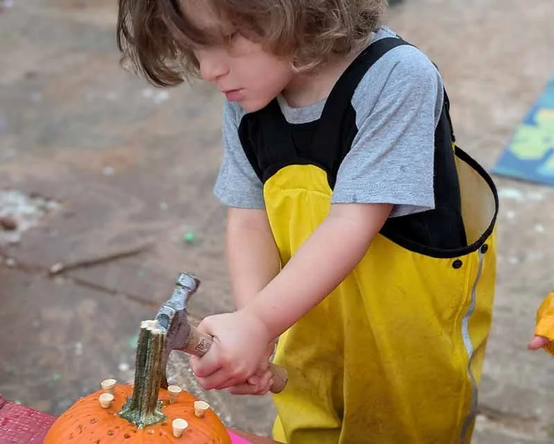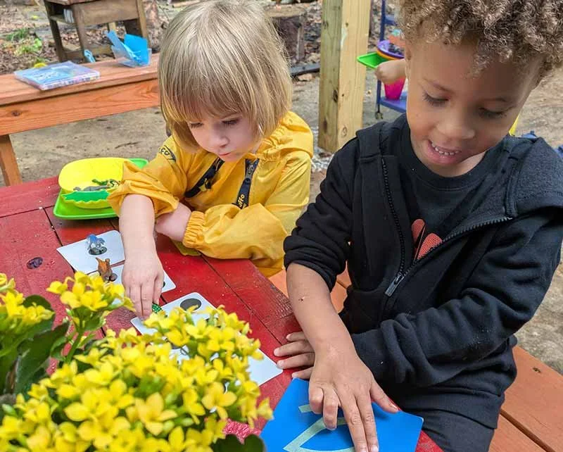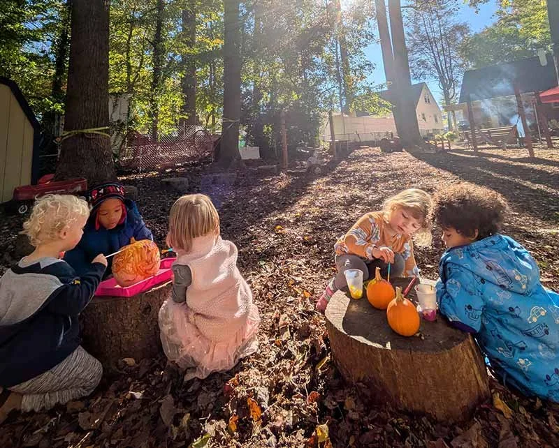 Our home-like environment is intentionally designed to feel warm, inviting, and grounded in nature. The expansive outdoor classroom features natural materials, mature trees, tunnels, hammocks, wooden stumps, a mud kitchen, and a covered area for year-round exploration. These thoughtfully curated elements create a calm and inspiring space where children can explore, discover, and grow at their own pace. In both indoor and outdoor settings, our carefully prepared environments support children in feeling safe, empowered, and ready to engage fully with the world around them.